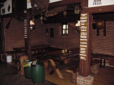 Mittwoch, 6. Juni 2001Lemkenhafen: Aalkate IIWerfen wir einen Blick ins Innere: Urige Tische und Stühle laden ein, aber es ist ziemlich finster. Wenn das Wetter es erlaubt, werden die Sitzgelegenheiten im Freien bevorzugt.