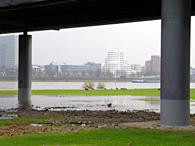 ... noch ohne sein gewohntes Kleid aus Wildem Wein. Wen es interessiert: Man kann hier unten im sonnigen Tal an der Mündung des Herzbaches in die Wupper und zu Füßen des einmaligen Rüdendenkmales seinen Urlaub verbringen.