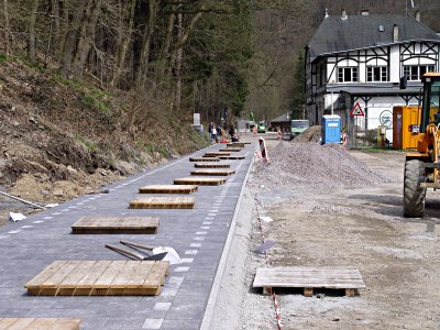 Das neue Betonpflaster breitet sich auf dem Müngstener Brückenweg immer weiter aus. Nur zur Erinnerung: Am Pfingstsonntag, den 4. Juni 2006, startet hier der I. Brückenzauber 2006.