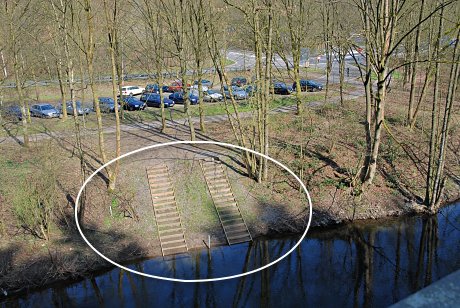 Zurück zum Schild, welches auf Wuppertaler Stadtgebiet steht. Es markiert folgendes Bauwerk, gedacht für Wassersportler (Kanuten, Kajakfahrer, Schlauchboote, ...)