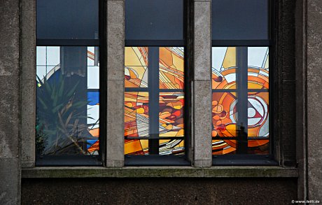 Die Tage zeigte ich ein gegenwärtiges Fotos, welches den Blick aus der restaurierten Bahnsteigbrücke im ehemaligen Solinger Hauptbahnhofes zeigt. Obiges Foto entstand im Mai 2003, intakte Glasscheiben waren damals eine Vision, und trotz natürlicher Klimaanlage waberte ein penetranter Duft menschlicher Erleichterungen um den eigenen Riechkolben.
