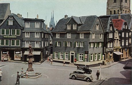 Fünf Jahre später, im Jahre 1960, Klaus Weber war mittlerweile schon Vorsitzender des „Verkehrs- und Heimatvereins“, entschied man sich jedoch anders: Zwei Künstlern war die Aufgabe gestellt worden, „für die Gestaltung des Alten Marktes zu einem Ruheplatz künstlerischen Schmuck in Verbindung mit einem fließenden Wasser zu entwerfen. Der Platz soll nämlich in Zukunftmehr als Parkplatz dienen.“
