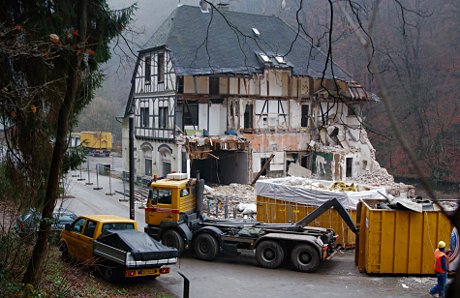 Ein Scheibchen Haus steht noch. Die Tanzfläche wurde für das Wochenende besenrein hinterlassen.